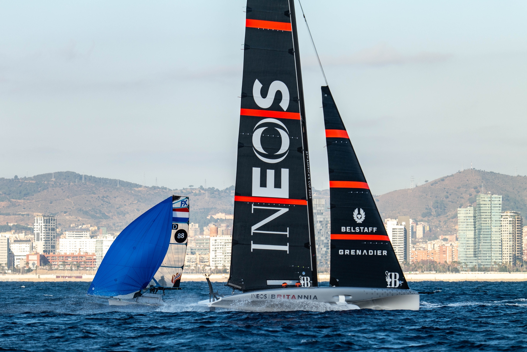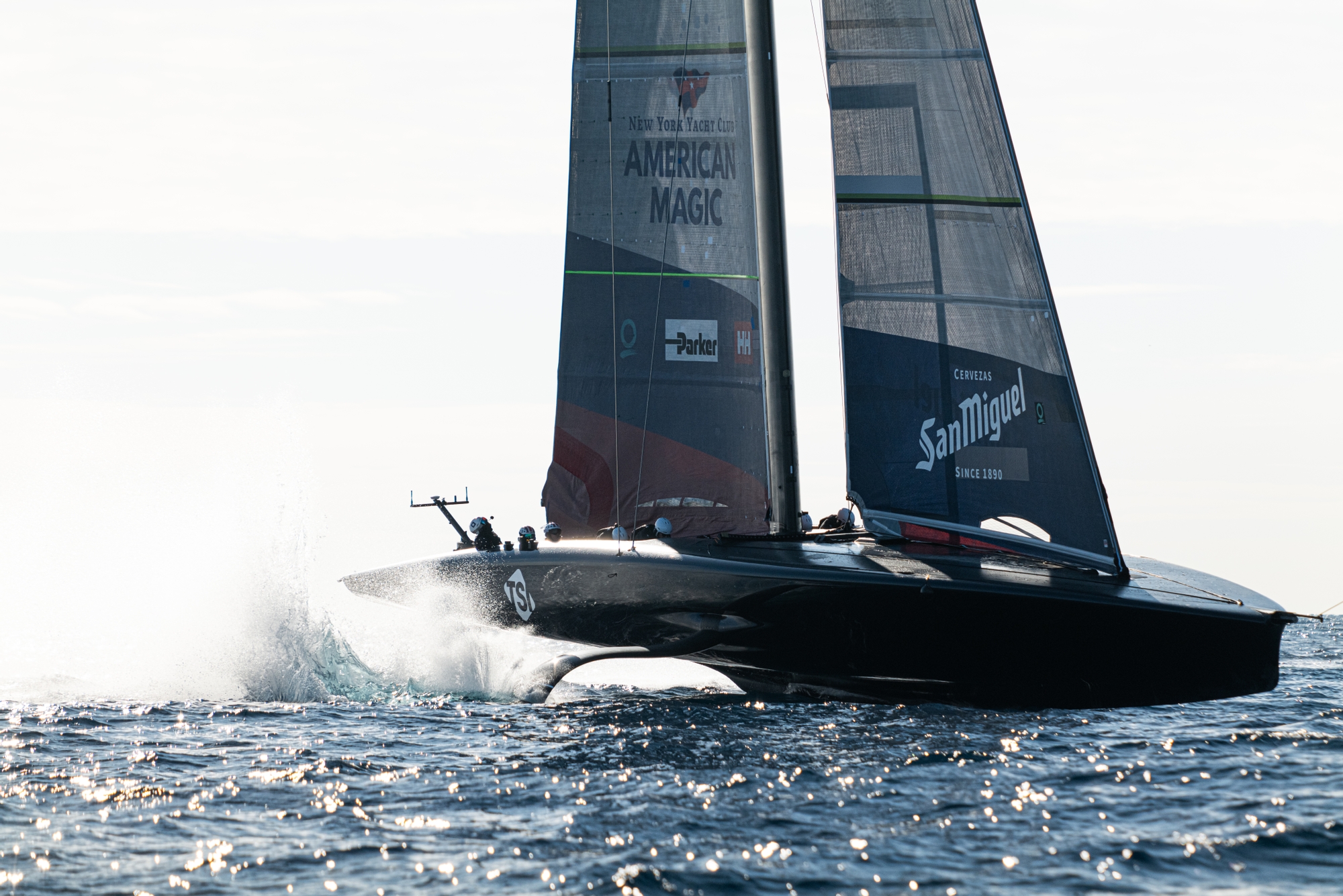 Back in Barcelona, another early riser was NYYC American Magic who docked-out just before 9am and put in a solid four-hour session looking way more stable initially than yesterday. The familiar bow-down pitch was enacted, and the team throttled around, nailing their manoeuvres and bedding-in those crucial systems that will be transferred almost lock-stock onto the new boat currently in build in the USA. The only fly in the ointment was a series of gybes on the way back to base in a dying breeze that yielded a number of splashdowns and was picked up on by the on-water recon team.