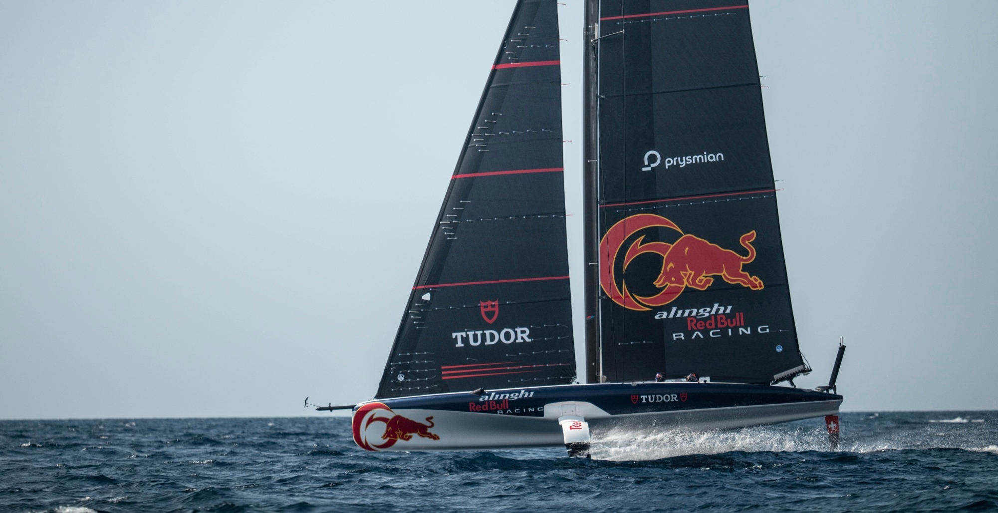 Over on the Red Sea in Jeddah, Saudi Arabia, it was another superb afternoon for the Alinghi Red Bull Racing team who once again were going hammer and tong against each other with Dean Barker again mentoring Maxime Bachelin on the ‘Red’ marked AC40 whilst the all-conquering duo of yesterday, Arnaud Psarofaghis and Nicolas Charbonnier took the ‘Black’ boat – both with full bespoke suits of exquisitely finished LEQ12 sails.