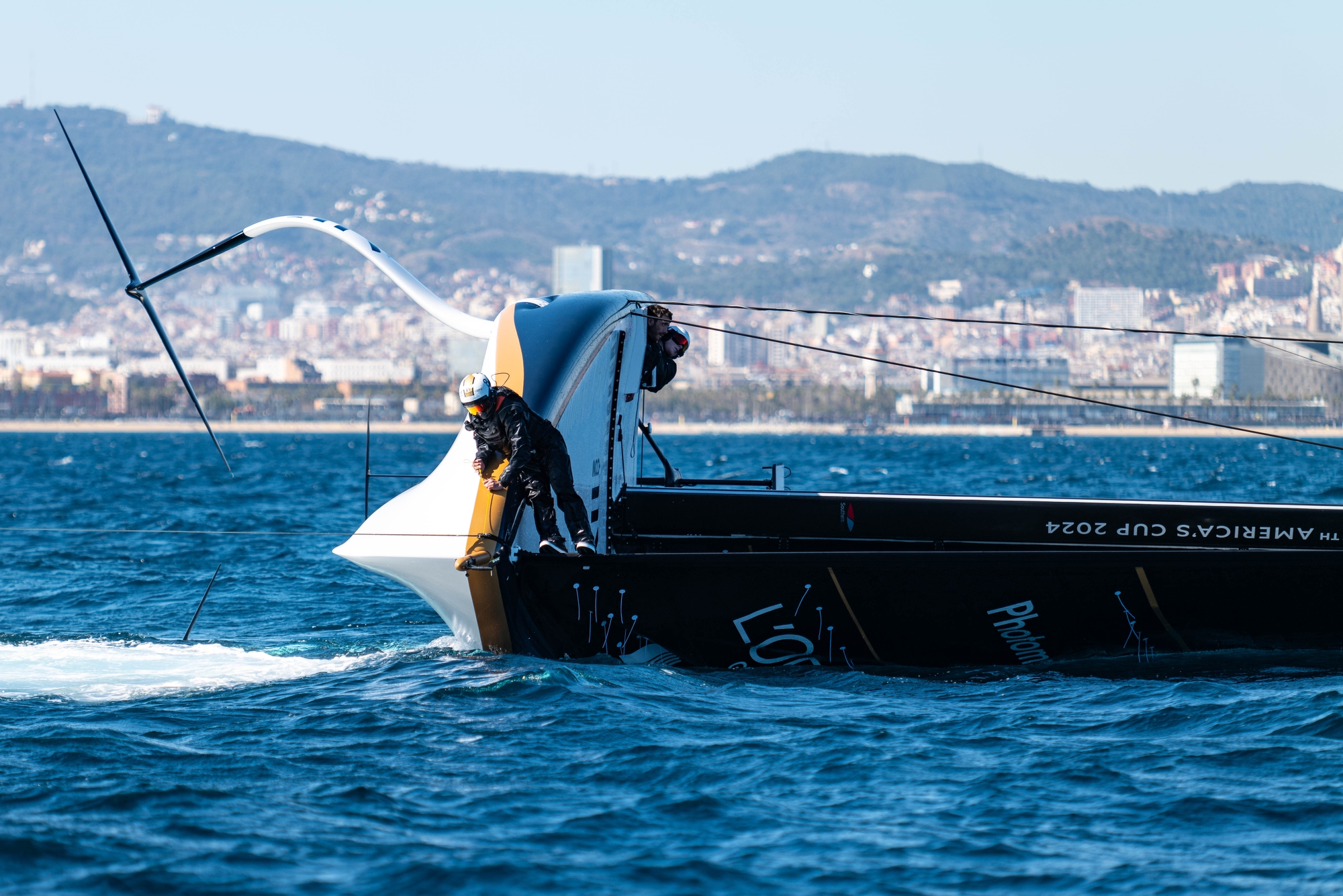America still had the cameras we commented on the past days, which are installed on the bottom of the side of the hull, a couple of metres forward from the foil arms. No LiDAR devices installed today on any of the boats.