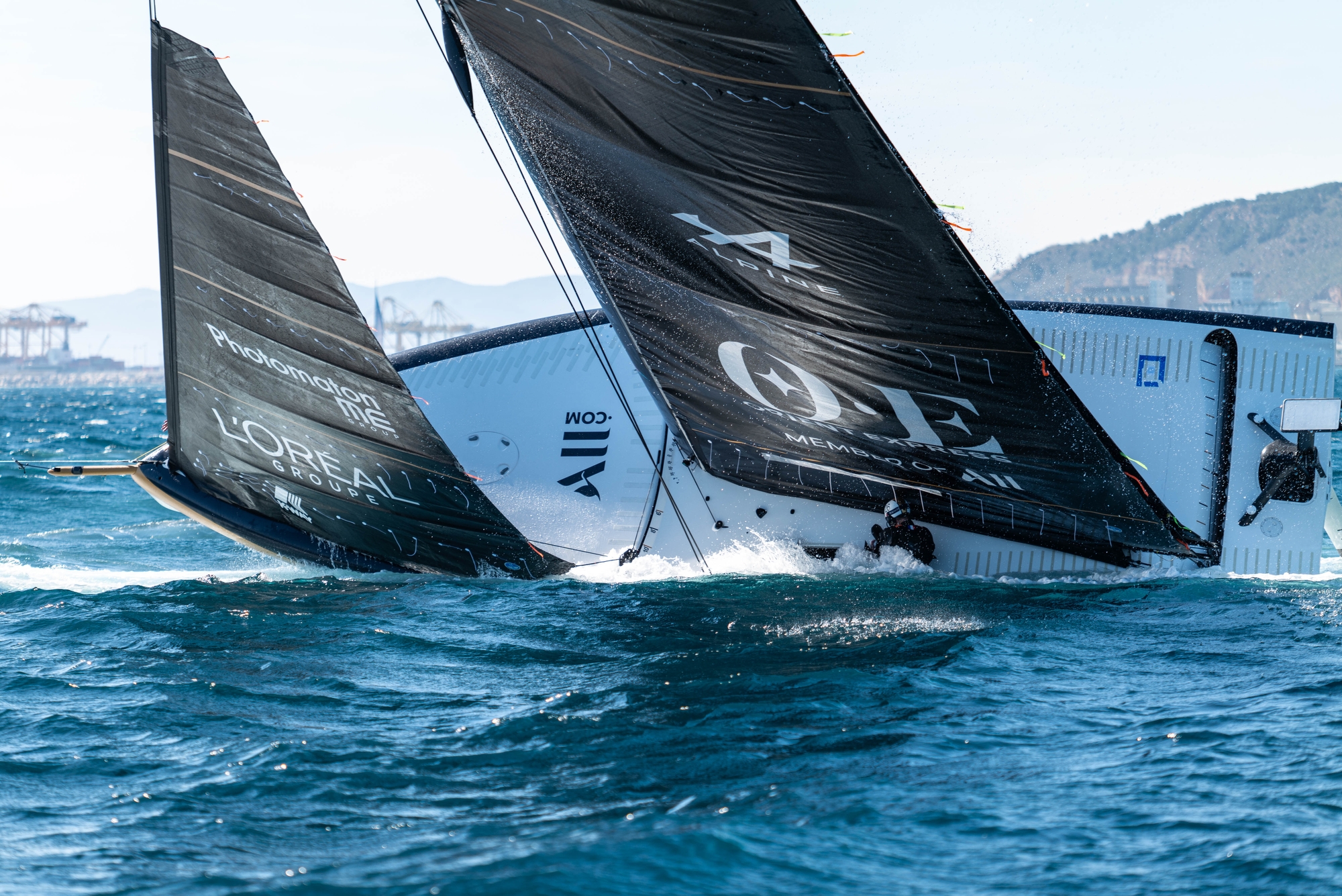 Twenty minutes after, once the replacement was finished, when the AC40 tried to get released from chase one to resume sailing, the boat capsized to the port side. Immediately after, the boat was towed to help to get it head to wind and a few seconds after it was upright. This process did not take more than two minutes. Nevertheless, a lot of water got inside the port side cockpits.