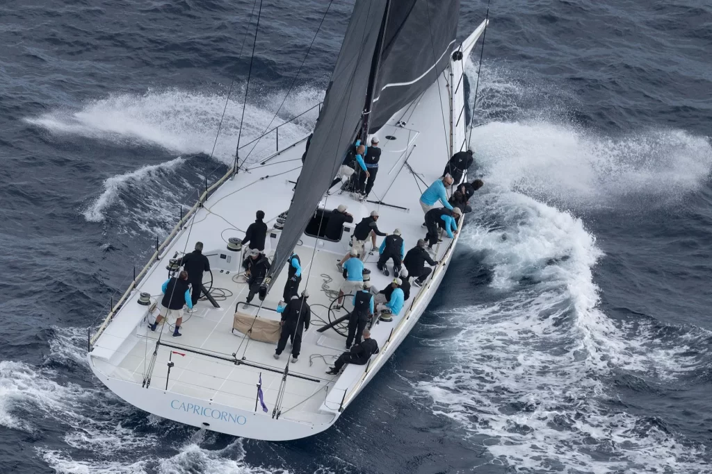 Today’s winner ahead of second-placed V, albeit by a slender 50 seconds, was Capricorno, which seems to relish the light conditions. “It was a good day for us – she was designed for this,” commented her tactician, Brazilian five time Olympic medallist and round the world race winner Torben Grael. “We have to improve our boat handling and manoeuvres and many things, but for sure the boat is much more competitive in the light. We had traffic throughout the race, because we started behind the smaller boats and sailing against bigger boats than you doesn’t help as they have less problems with the traffic.”